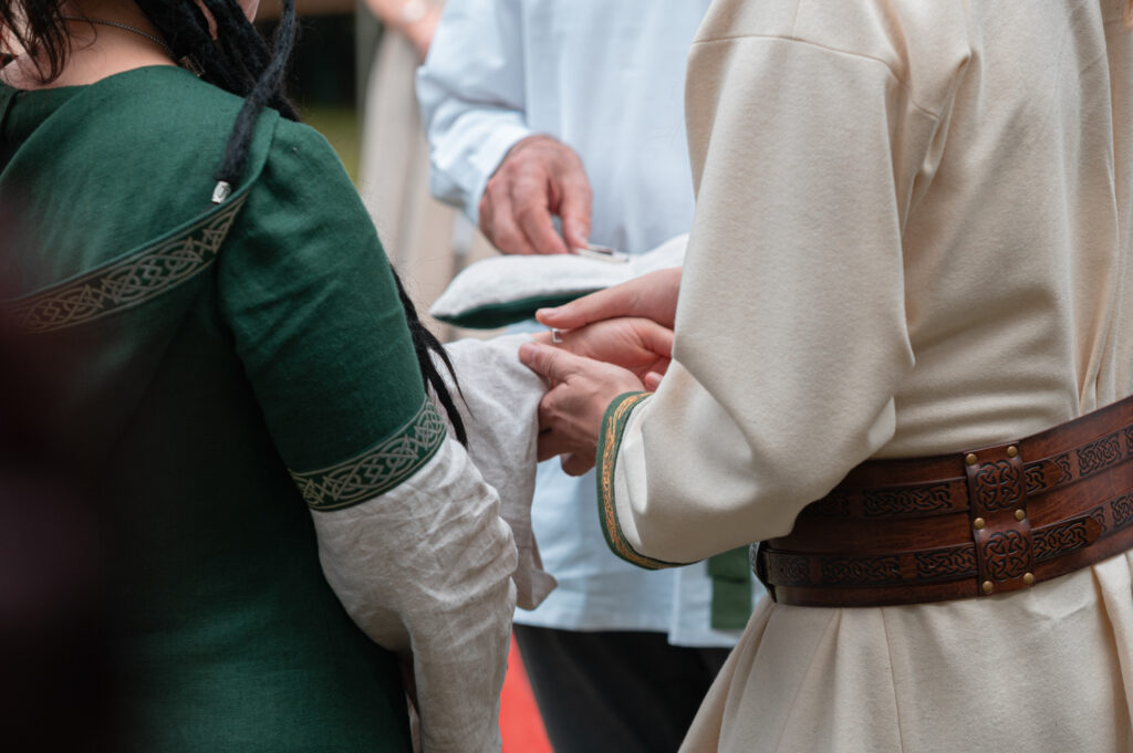 In Münster gaben sich Dunja und Jason das Ja-Wort bei einer berührenden Wikingerhochzeit mit Handfasting, Sandritual und einer freien Trauung voller alter Rituale.